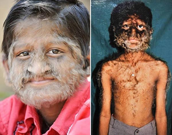 Hipertricosis, o Síndrome del Hombre lobo , es una enfermedad muy poco frecuente, que es destacada por la existencia de un exceso de cabello. Las personas que la padecen están cubiertas completamente, a excepción de las palmas de las manos y de los pies, por un vello largo, que puede llegar hasta los 25 centímetros.
